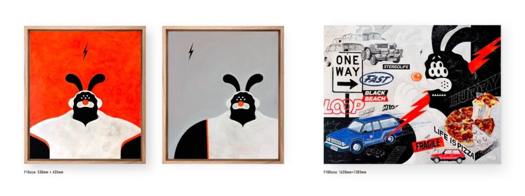 2023年より湘南を拠点に独自の創作活動を開始。80年代カルチャーやストリート文化の影響を受けたポップで自由な作風と、長年培ったデザインスキルを融合させ、作品やグッズ、アパレルなど多彩な分野で活動を展開しています。