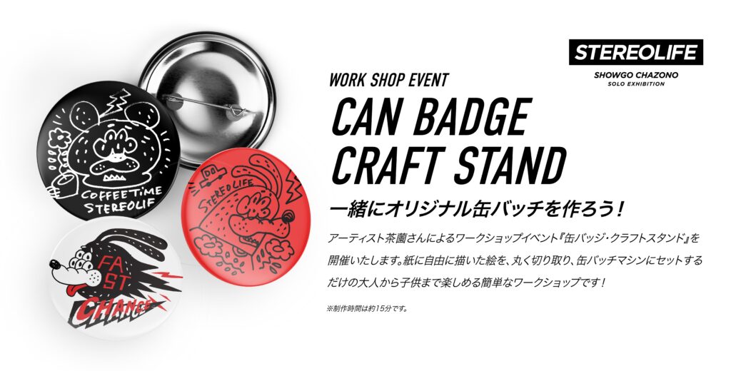 また今回のイベント開催を記念し、漫画家・コラムニストの辛酸なめ子さんと茶薗さんによるスペシャルトークイベントや、茶薗さんと一緒に缶バッジを作るワークショップも実施します。