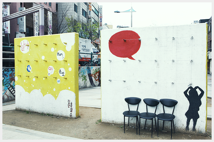 ソウルの美大である弘益大学があり若者カルチャーの最先端ともいえる弘大。