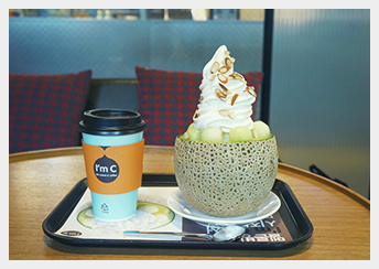軽食、ドリンクメニューも豊富です。注文したのは一番人気のメロンピンス!で…でかーーーーーっ!まじっすか!メロン丸ごときましたよ!(笑)